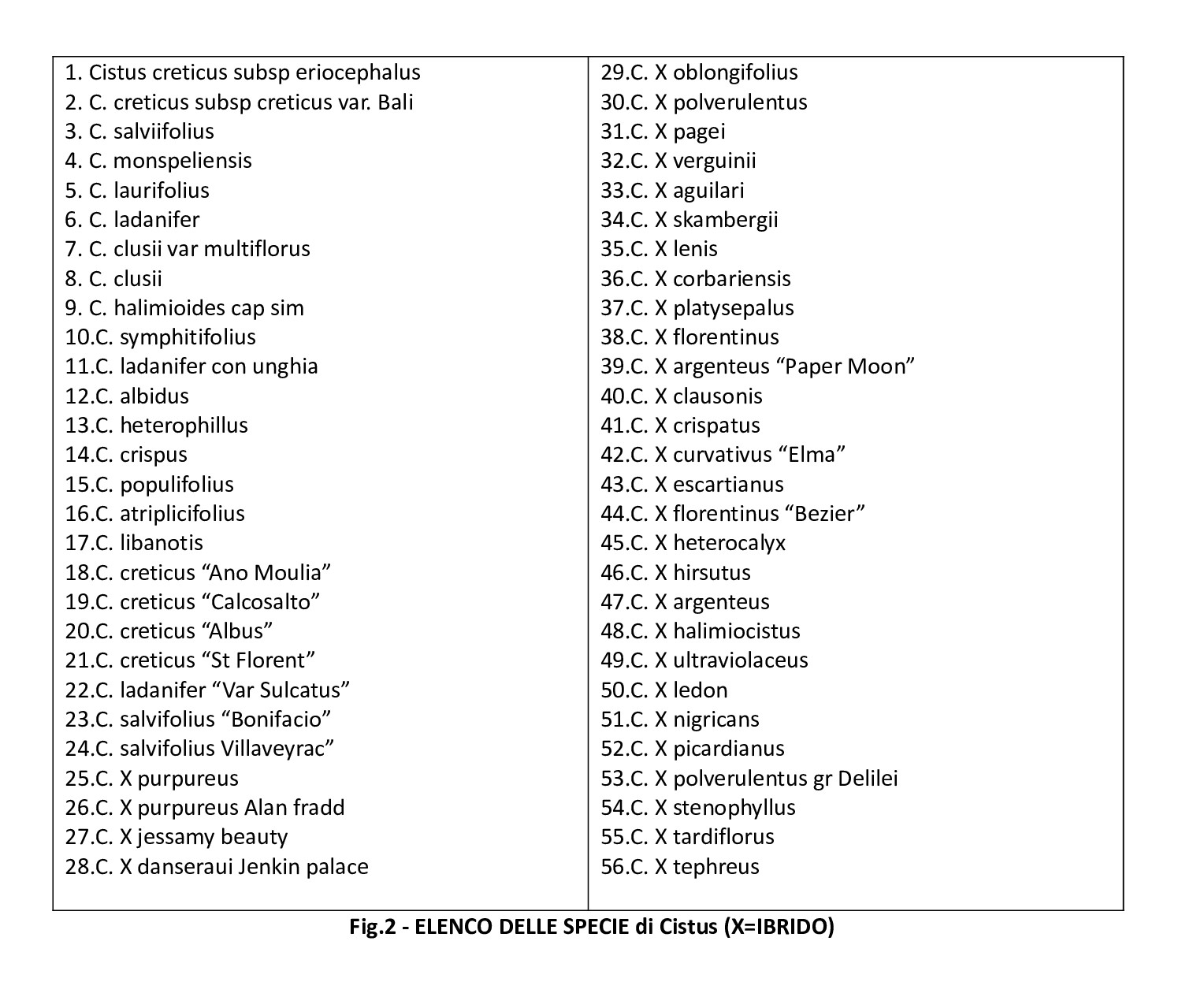 All’interno dell’Arboreto è inoltre coltivato un Giardino dei Cisti e Halimium (Hortus Maremmae Cistus), dove si trovano circa oltre 50 tipi (specie e ibridi) di questi bellissimi generi, rappresentanti una vasta rassegna delle specie di cisto presenti nel bacino del mediterraneo (Fig.2). In Italia, ad esempio, vivono spontaneamente 8 specie, tutte presenti nel Giardino.