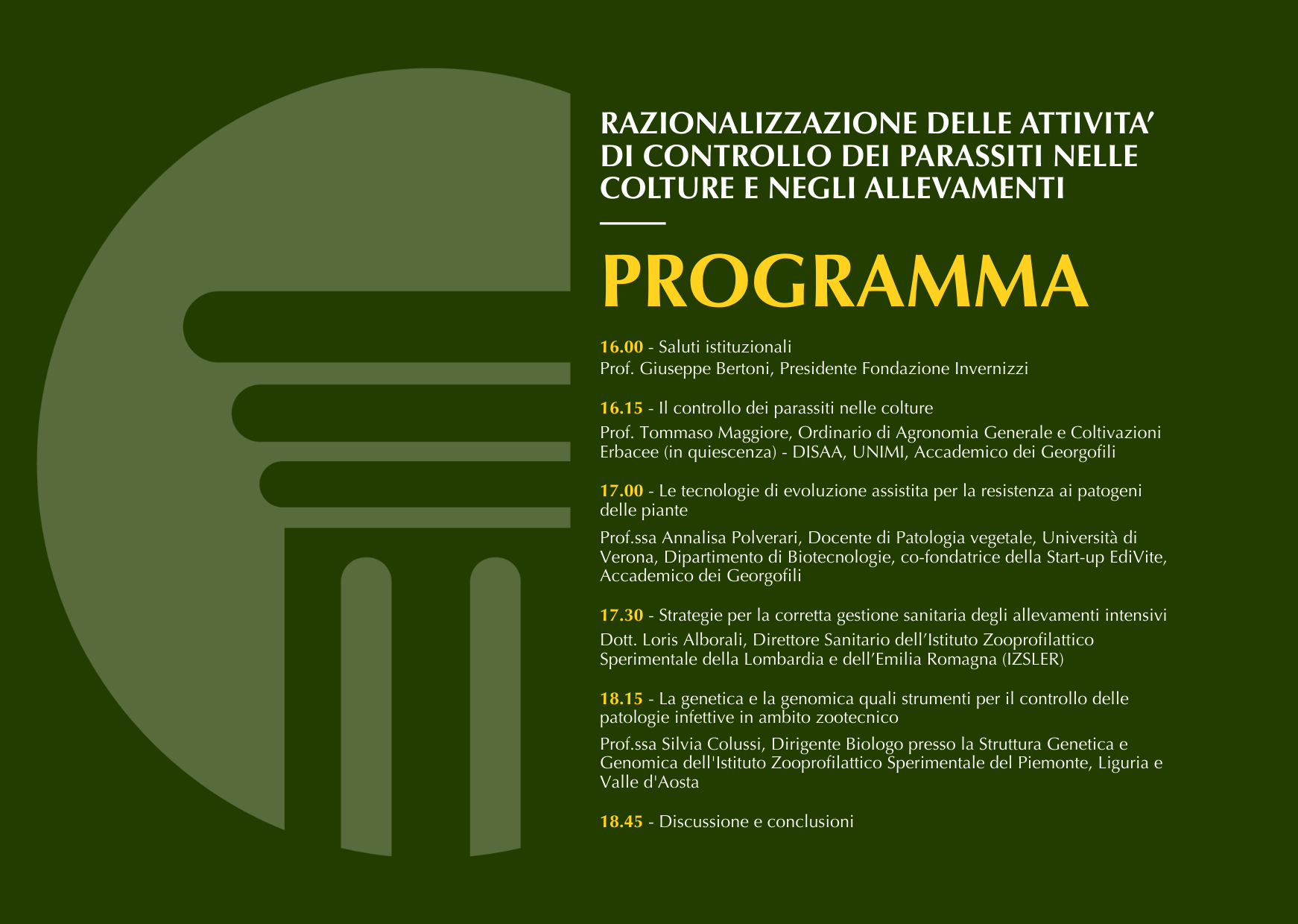 L’incontro, organizzato da Fondazione Invernizzi in collaborazione con l’Accademia dei Georgofili, si pone come prosecuzione e approfondimento del convegno promosso dalla stessa Accademia il 6 novembre 2025, con l’obiettivo di aggiornare e integrare le più recenti evidenze scientifiche sulle strategie di controllo dei parassiti in ambito colturale e zootecnico, alla luce delle innovazioni tecnologiche, genetiche e gestionali oggi disponibili.