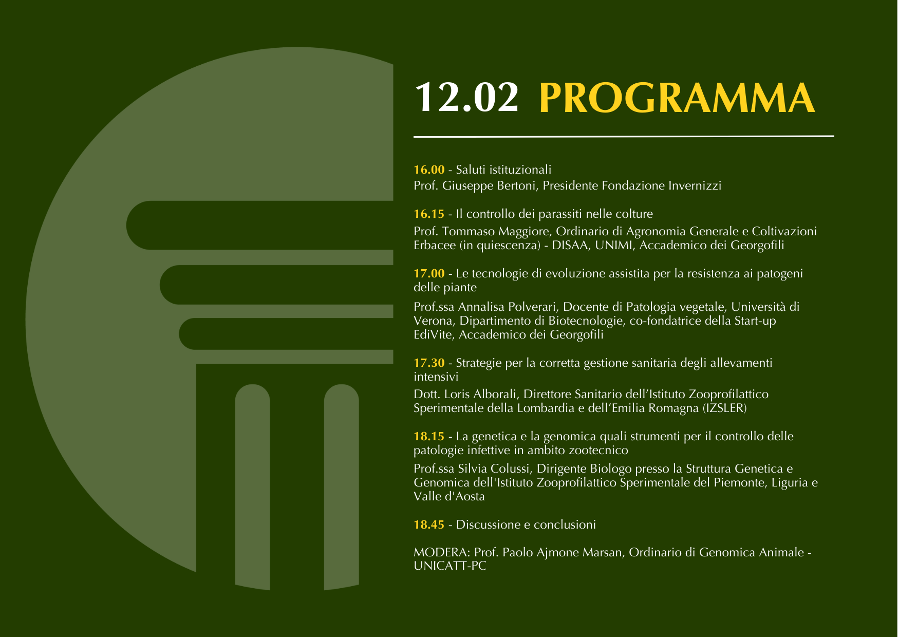 L’incontro, organizzato da Fondazione Invernizzi in collaborazione con l’Accademia dei Georgofili, si pone come prosecuzione e approfondimento del convegno promosso dalla stessa Accademia il 6 novembre 2025, con l’obiettivo di aggiornare e integrare le più recenti evidenze scientifiche sulle strategie di controllo dei parassiti in ambito colturale e zootecnico, alla luce delle innovazioni tecnologiche, genetiche e gestionali oggi disponibili.