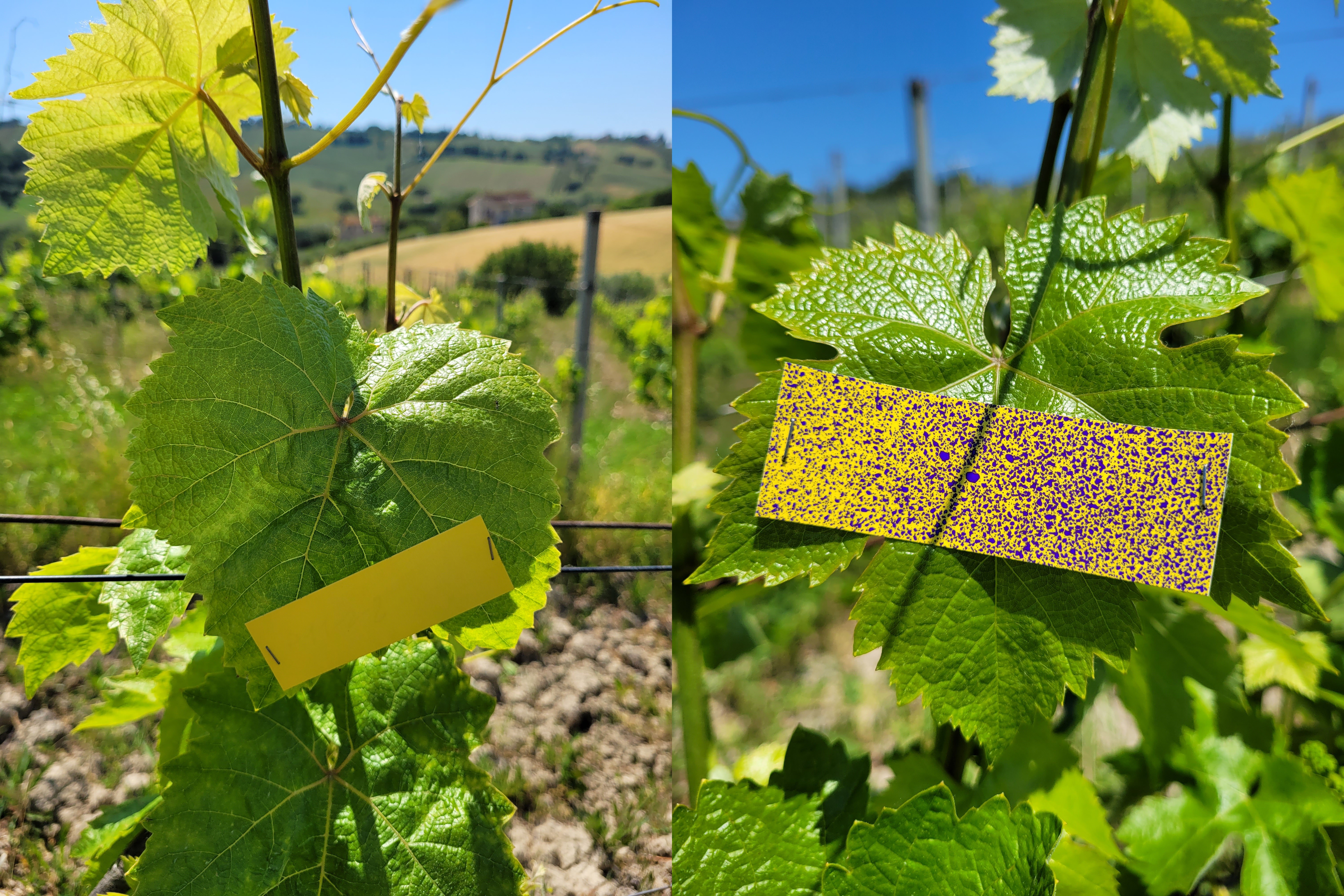 Una volta terminati i trattamenti, le cartine impressionate dalla miscela irrorata sono state raccolte e portate in laboratorio per l'analisi (Figura 2 esempio di cartina posta sulla vegetazione prima e dopo il trattamento.jpg, in copertina).