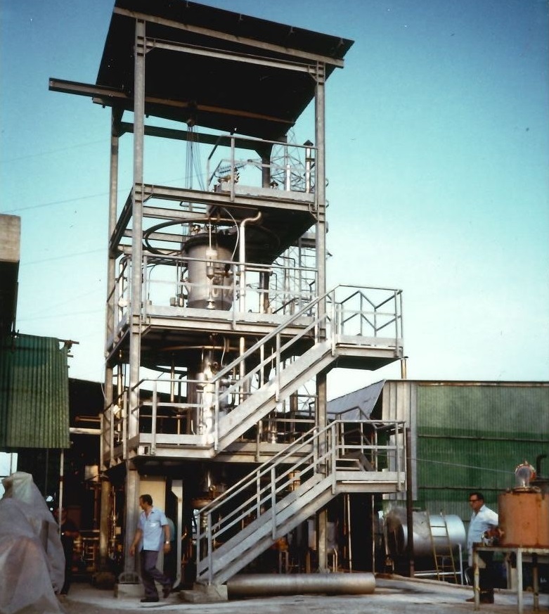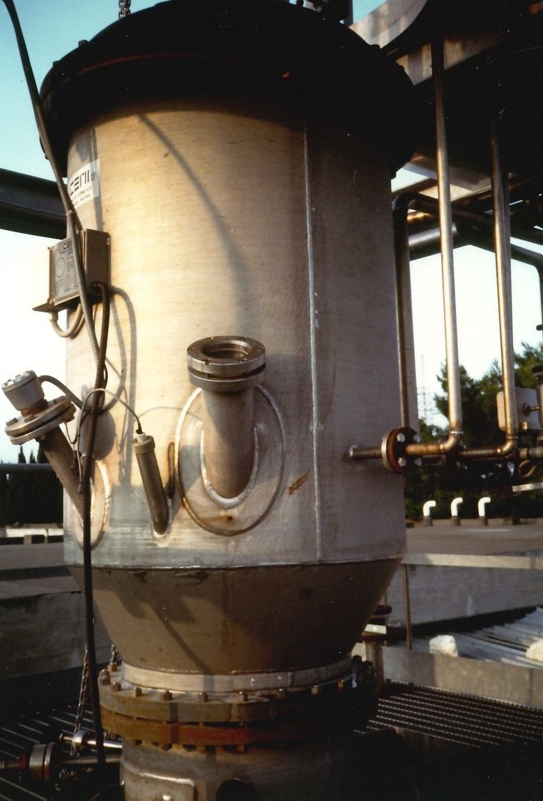 L'unità di fermentazione in scala pilota è stata progettata meccanicamente da C.e.m.i SpA (Cisterna di Latina, Italia) e costruita presso Rasa-Realtur SpA (Manfredonia, Italia) nel 1989. L'unità comprendeva un bioreattore a colonna (R) con un diametro interno di 0,6 m e un'altezza di 3,5 m, dotato di un tubo interno (0,36 m di diametro, 2,8 m di altezza) ove possono essere alloggiate fino a sei piastre perforate (diametro dei fori di 3 mm, passo triangolare di 8 mm). Questo bioreattore a colonna è accoppiato a un separatore di schiuma di 0,8 m di diametro e 1,2 m di altezza, entrambi do-tati di chiusure toroidali.